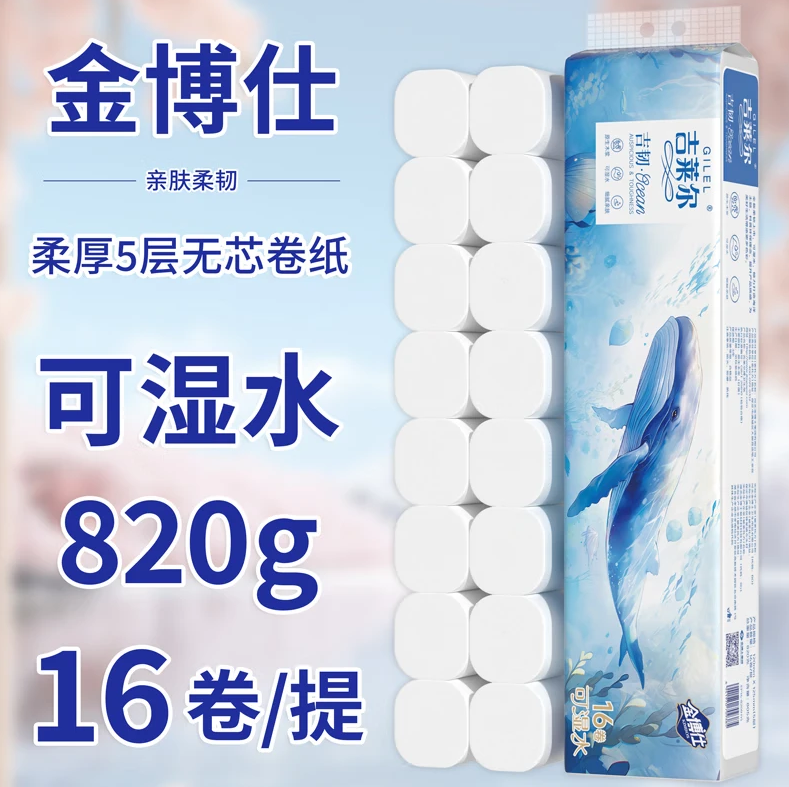 金博仕无芯卷纸吉莱尔系列5层大卷加厚原POP店生木浆款实惠装大卷妇婴纸厕纸 5层51.25g*16卷