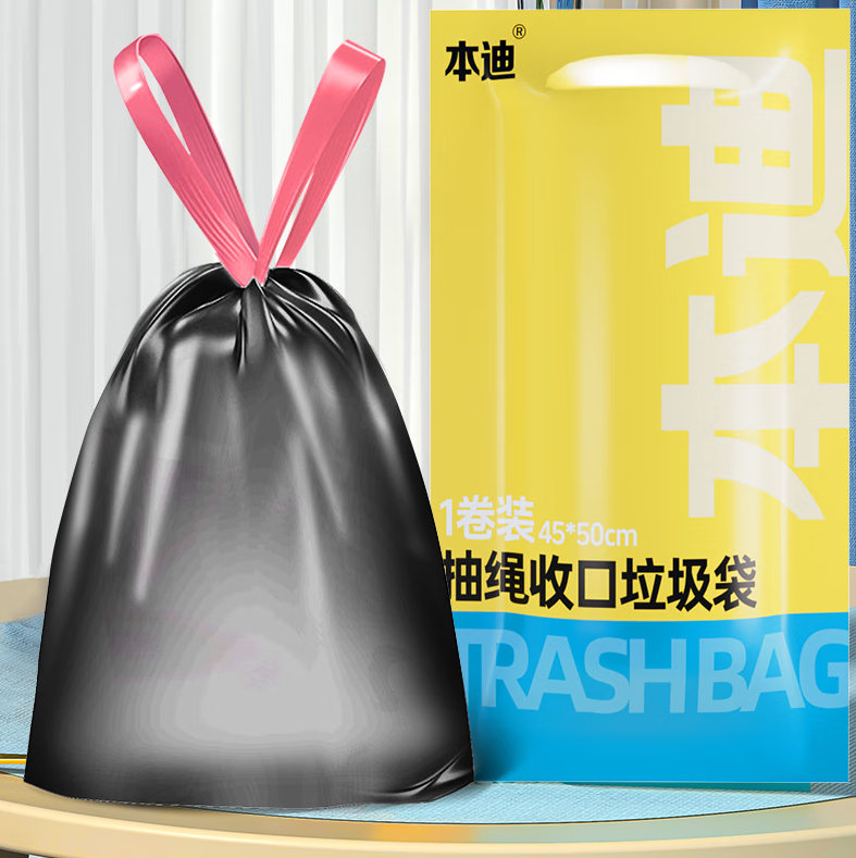 • 商品名称:本迪垃圾袋抽绳白动收口厨房客厅家用卫生间卧室办公黑色45*50Em*60只[加厚-求号-抽绳黑]60