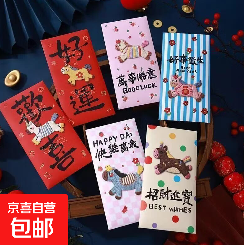 • 商品名称:2026马年加厚平面刺绣风红包卡通风可缓好运压岁新年利是封袋新款热销[12个装]每款各2早12早