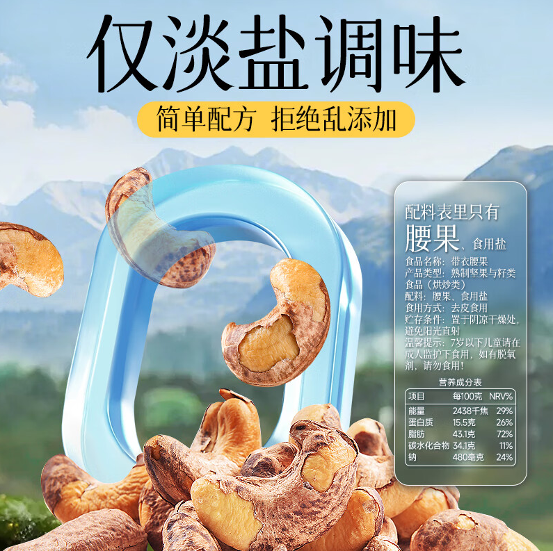 • 商品名称:华味享 带衣膊果250g/袋 A180大颗粒1斤休闲零食紫衣腰果儿童孕妇坚果250g*2袋(推荐)